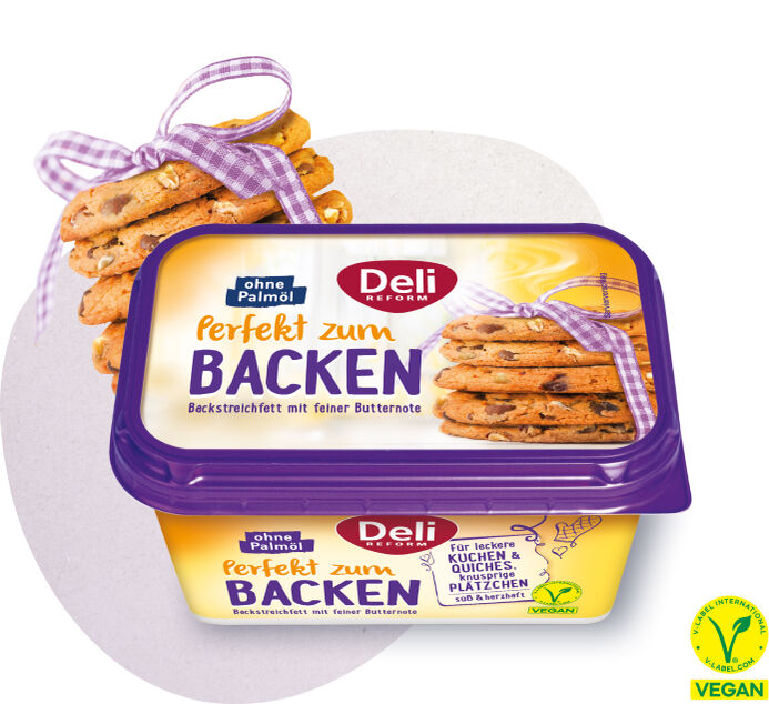 Margarine zum Backen: Deli Reform Perfekt zum Backen ist ein Backstreichfett mit feinem Butteraroma, das gemeinsam mit Konditormeistern entwickelt wurde. Mit ihm gelingen alle Arten von Teig perfekt. So lässt Deli Reform Perfekt zum Backen Hefeteig schön aufgehen, macht Rührkuchen herrlich saftig und sorgt mit optimaler Konsistenz dafür, dass sich Mürbeteig richtig gut verarbeiten lässt.