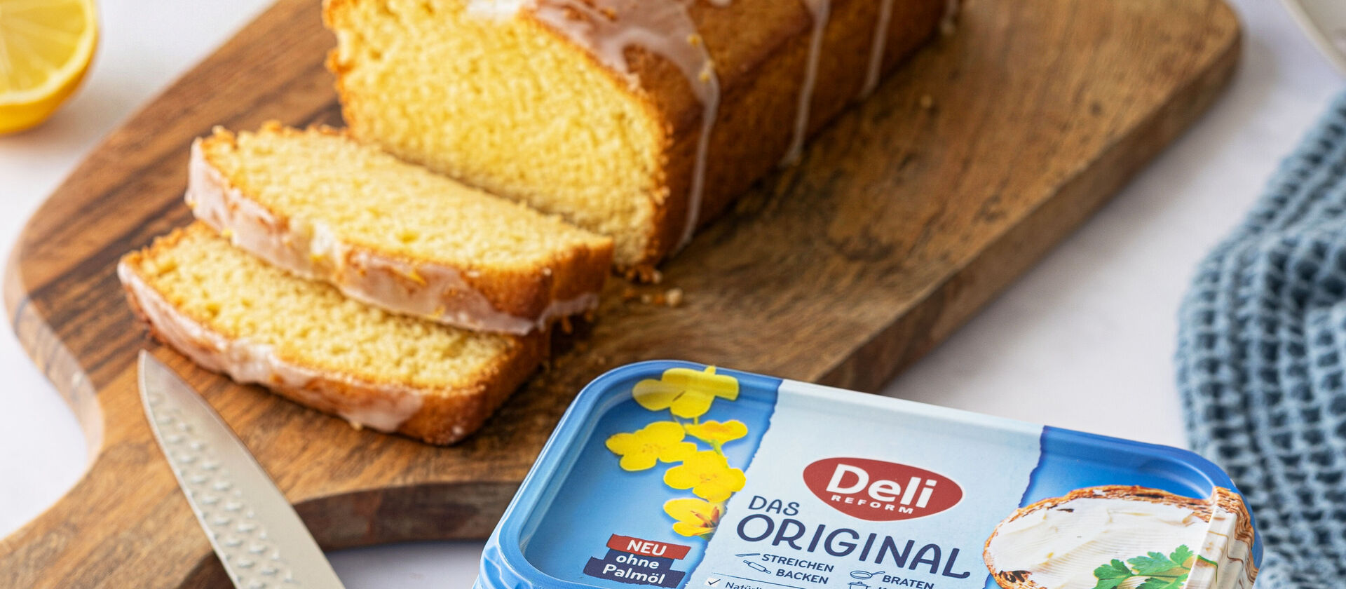 Für den Teig Deli Reform Das Original mit Zucker, Vanillezucker und Salz cremig schlagen. Eier einzeln unterrühren, dann die Zitrone dazugeben. Mehl und Backpulver miteinander vermengen und unterheben.